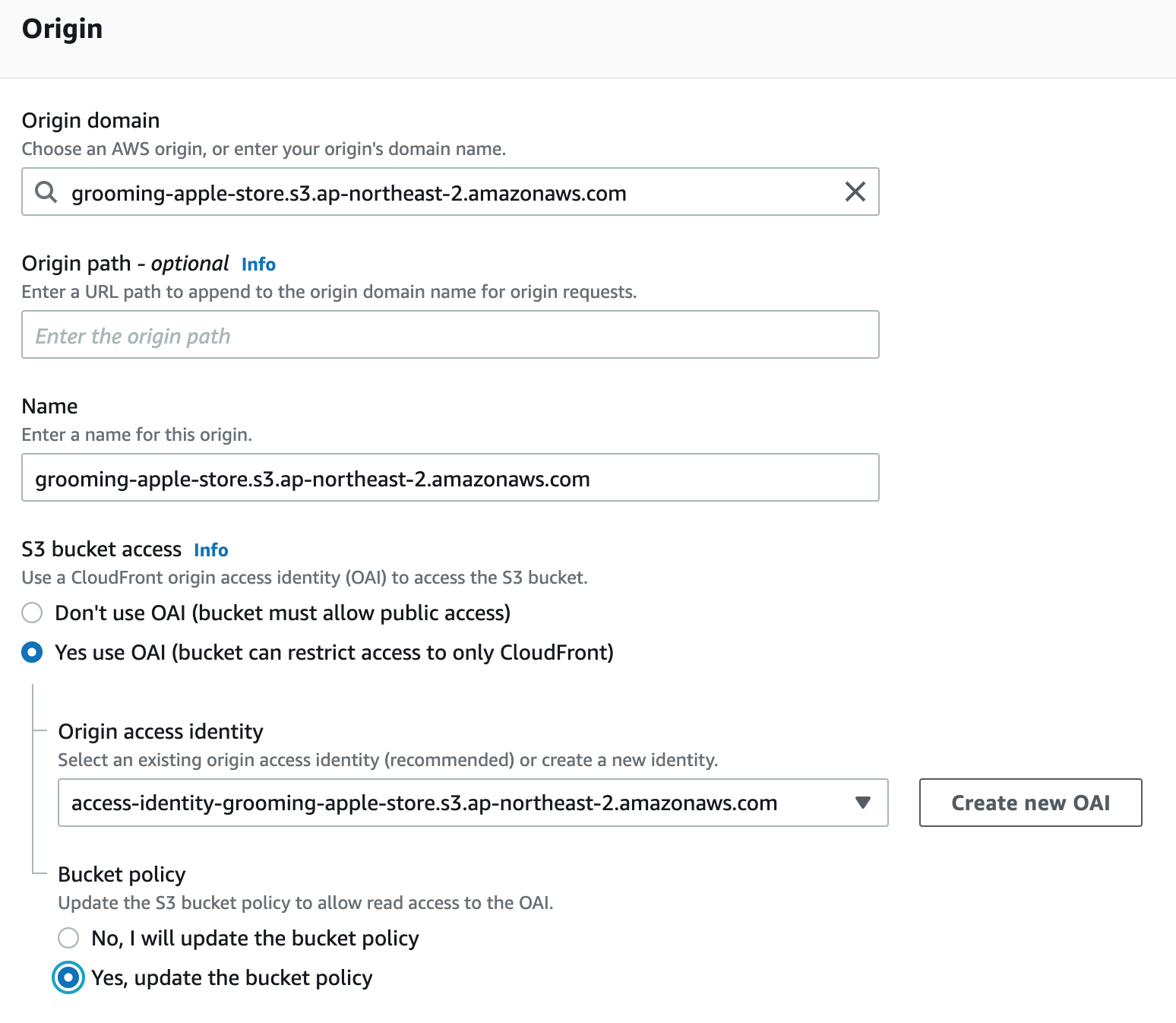 고르려고 하다보면 내 OAI가 없을텐데, 당황하지 않고 Create new OAI를 눌러 생성해주면 된다.