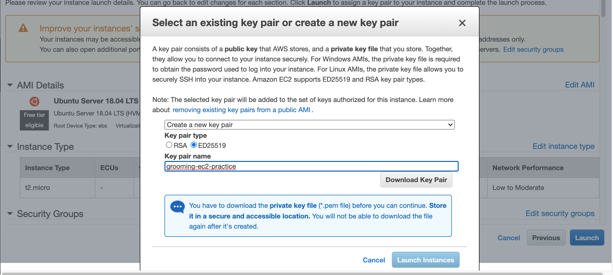 $ chmod 400 grooming-ec2-practice.pem