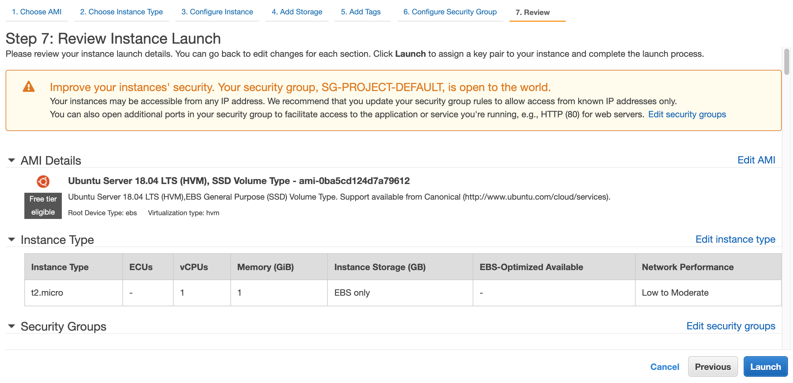 ✔️ 1-7. 인스턴스를 시작하기 전에, 지금까지 선택한 것들을 검토하기!