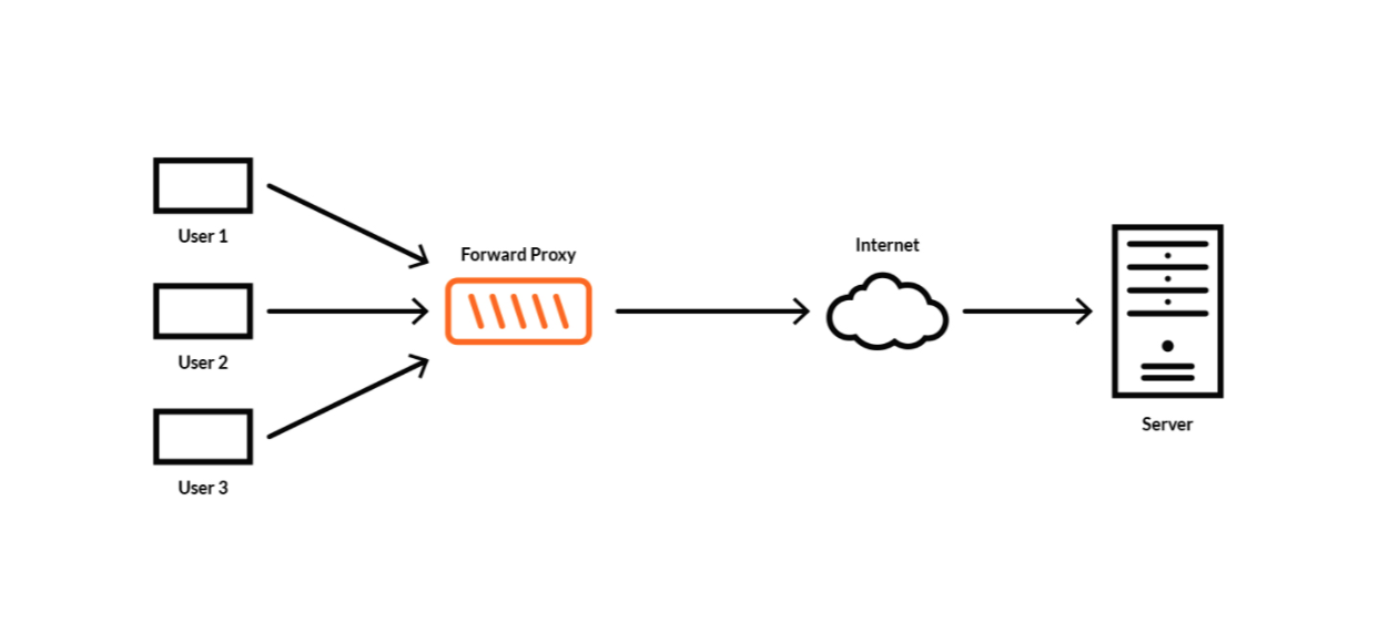 어떤 사용자가 프록시 서버를 통해 웹사이트에 들어가려고 하면, 프록시 서버로 요청이 이동한다음 웹 사이트로 전달된다. 서버와 클라이언트가 직접 통신하지 않도록 중간에서 클라이언트의 요청을 자기가 가져가서 서버에 요청을 보낸다. 이렇게되면 요청이 프록시 서버에서부터 시작된걸로 보이기 때문에 서버는 사용자를 알 수가 없게 된다.