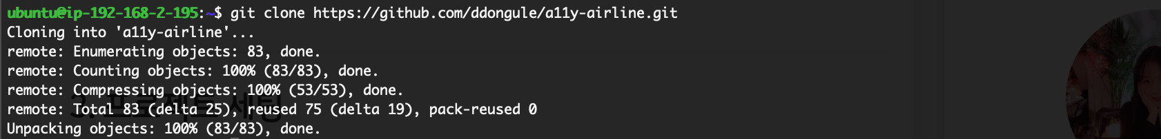 그러면 이제 이 원격 컴퓨터에 우리가 아까 위에서 만들어서 github에 올려둔 페이지(Next.js 앱)를 clone받는다.